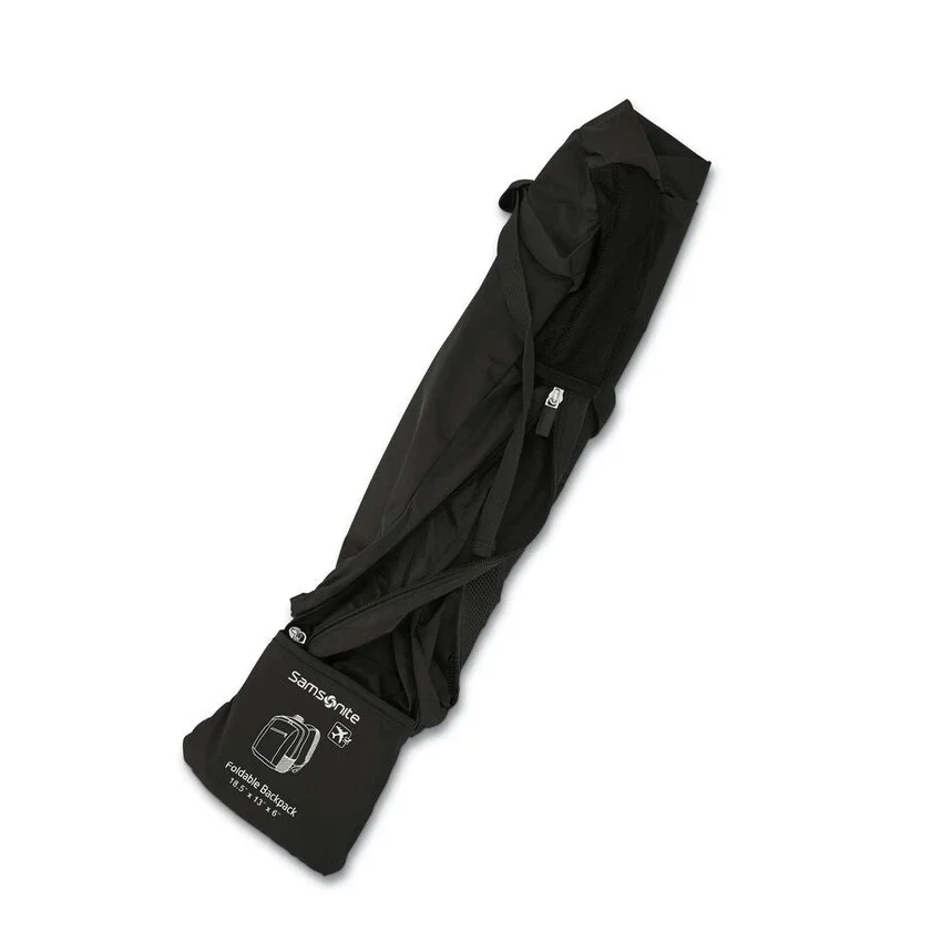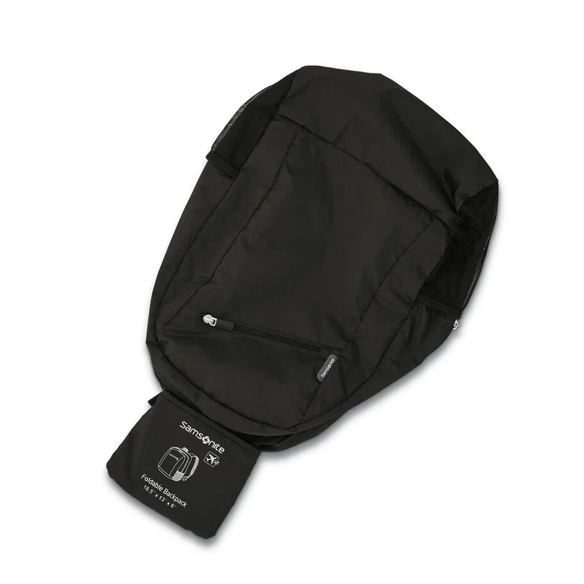 easily folds into integrated compact pouch with a loop for convenient carrying.