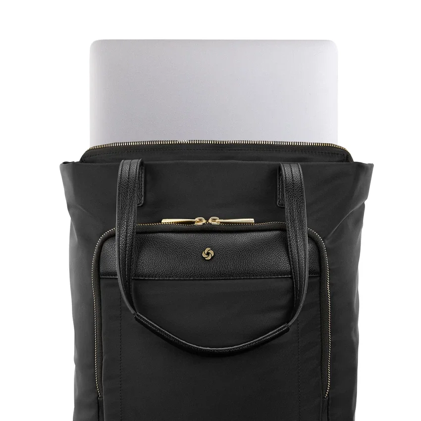 the convertible backpack offers three stylish ways to carry—backpack, tote, or crossbody. with a padded laptop sleeve, water bottle holder, and front organizer, it’s perfect for commuting or travel. soft champagne hardware and pebbled trim add a chic touch.