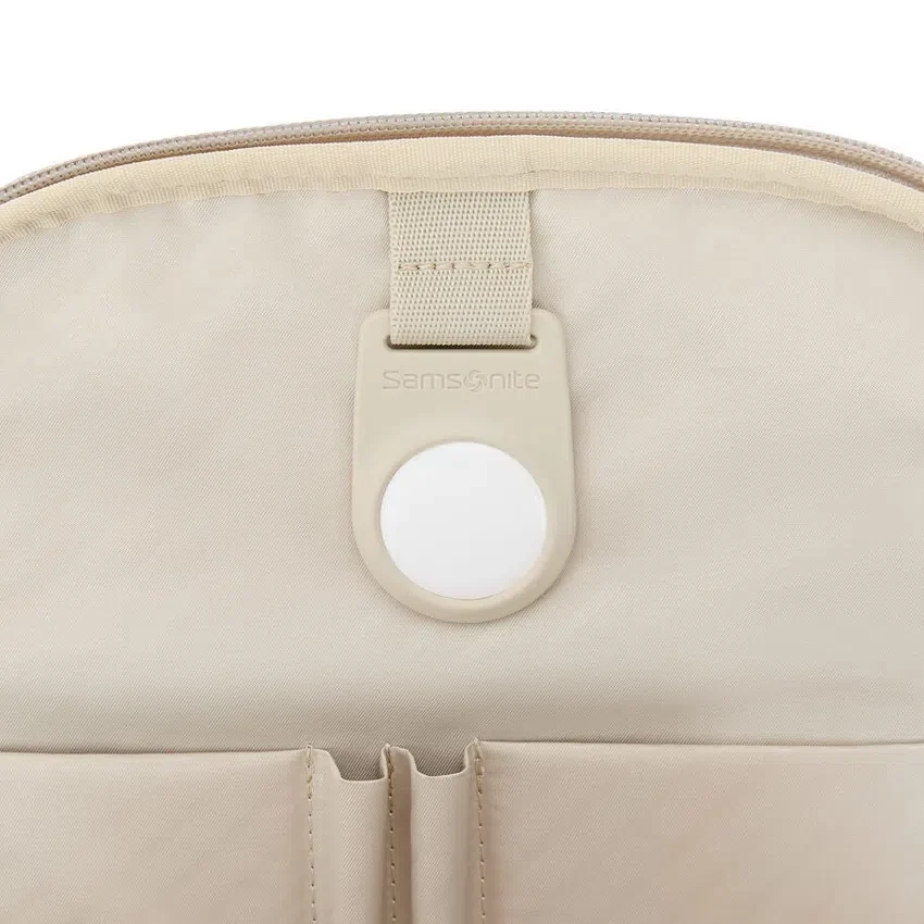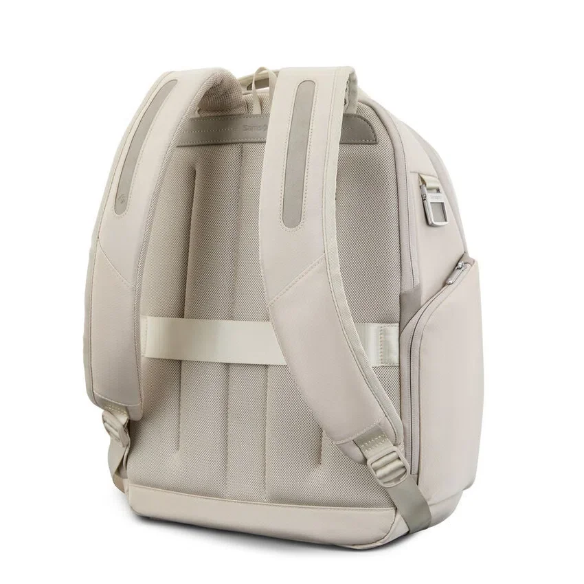 the everyday backpack’s five-compartment design features a secure slip pocket on the front, a large main compartment in the middle, a dedicated laptop/tablet compartment in the back, and a separate file compartment with dedicated organization inside.