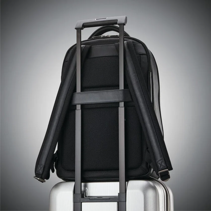 Carry in style with a Samsonite leather laptop backpack—designed for comfort, protection, and space for two laptops, documents, and daily essentials.