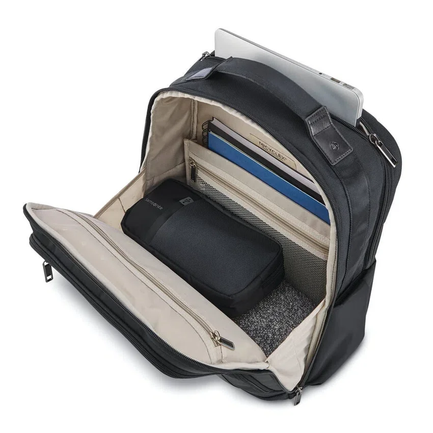 when you need just a little more, the 15.6” nuroad backpack has got you covered. includes everything that makes the 14.1” best in class but sized to fit a larger laptop. featuring samsonite’s recyclex® lining made from 100% recycled bottles, and a bonus pouch with rfid and wireless charging pockets, ideal backpack for when bigger is better and needed.