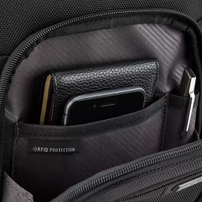 an update to our iconic classic collection. featuring new logos, hardware, and lining, the classic business 2.0 aesthetic reflects a modern, tailored approach to business while still embodying a multifunctional, everyday appeal. convenient, hands-free design in a modern and practical silhouette. the added rfid protective lining makes this a great travel or everyday bag. sized to fit all the essential items.