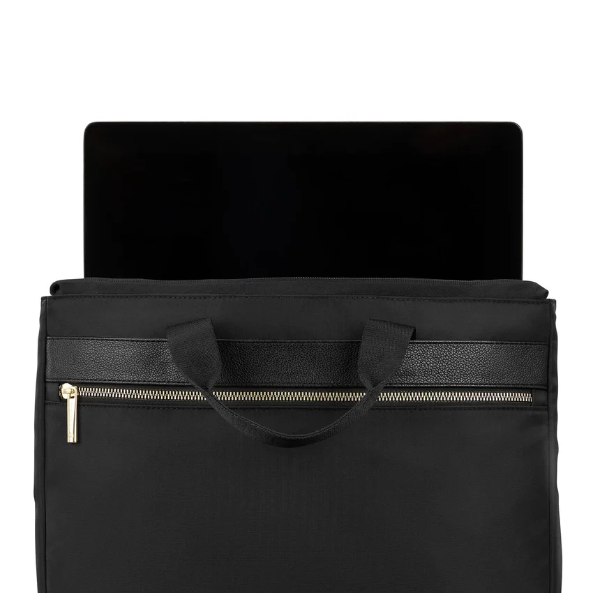 the convertible slim brief features a sleek, slim design with a removable strap to wear hand-carry or crossbody. it has a fully padded laptop compartment, tablet sleeve, interior pockets, an exterior zip pocket, and a stackit™ strap for easy luggage attachment.
