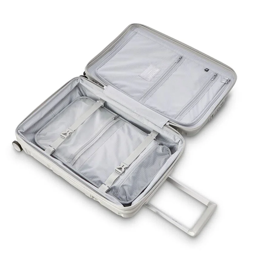 - this smart and sleek piece is all systems go – while pulling out all the stops: from its molded trolley handle to easy-lift top and side grips. with integrated extras like a built-in tsa lock and usb port, as well as superb-adaptable interior lined in our eco-conscious recyclex® fabric, this all-time travel essential bridges form and function flawlessly.