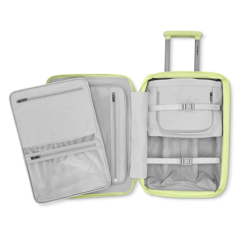 at just 5.7 lbs, the venue x carry-on’s organization is seamless with the integrated divider, wetpack™ and expandable packing cube. dual spinner wheels give you the freedom to move effortlessly , while a discretely hidden trolley hook makes carrying extra bags a breeze.