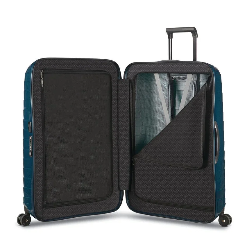 take proxis luggage on your next trip to travel with both confidence and style. the roxkin™ outer shell provides remarkable strength and resilience in a multi-layered lightweight design that you can find only at samsonite. the ergonomic handle, dual spinner wheels, tsa-friendly lock, and built-in usb port add convenience to your experience, providing you with everything that you need when you’re on the move.
