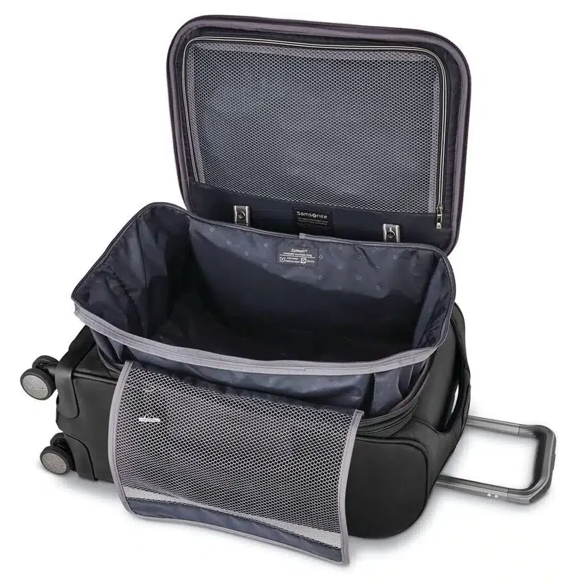 Upgrade your travel with the Samsonite Theorym Medium Spinner featuring durable design, RightHeight™ handle, spinner wheels, and washable lining.