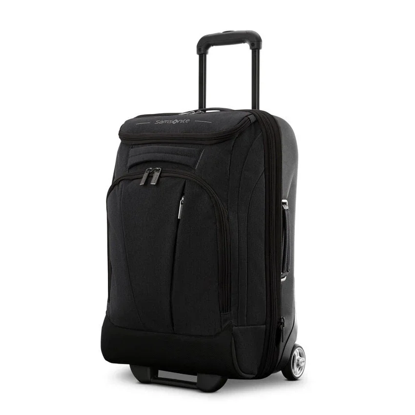 the mother lode carry-on rolling duffel is where hardside meets softside luggage. with a molded backside for supreme durability coupled with organization, this duffel is perfect for a weekend getaway or an extended trip out of town.
